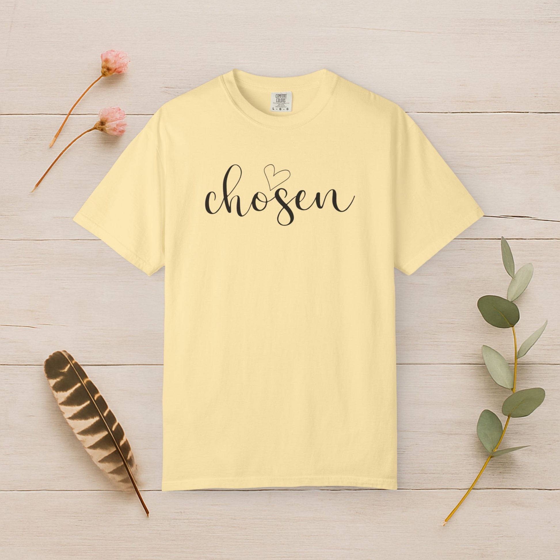 Elegant lettering and a heartfelt design make this shirt a beautiful declaration of faith. Wear it as a daily reminder that you were chosen.