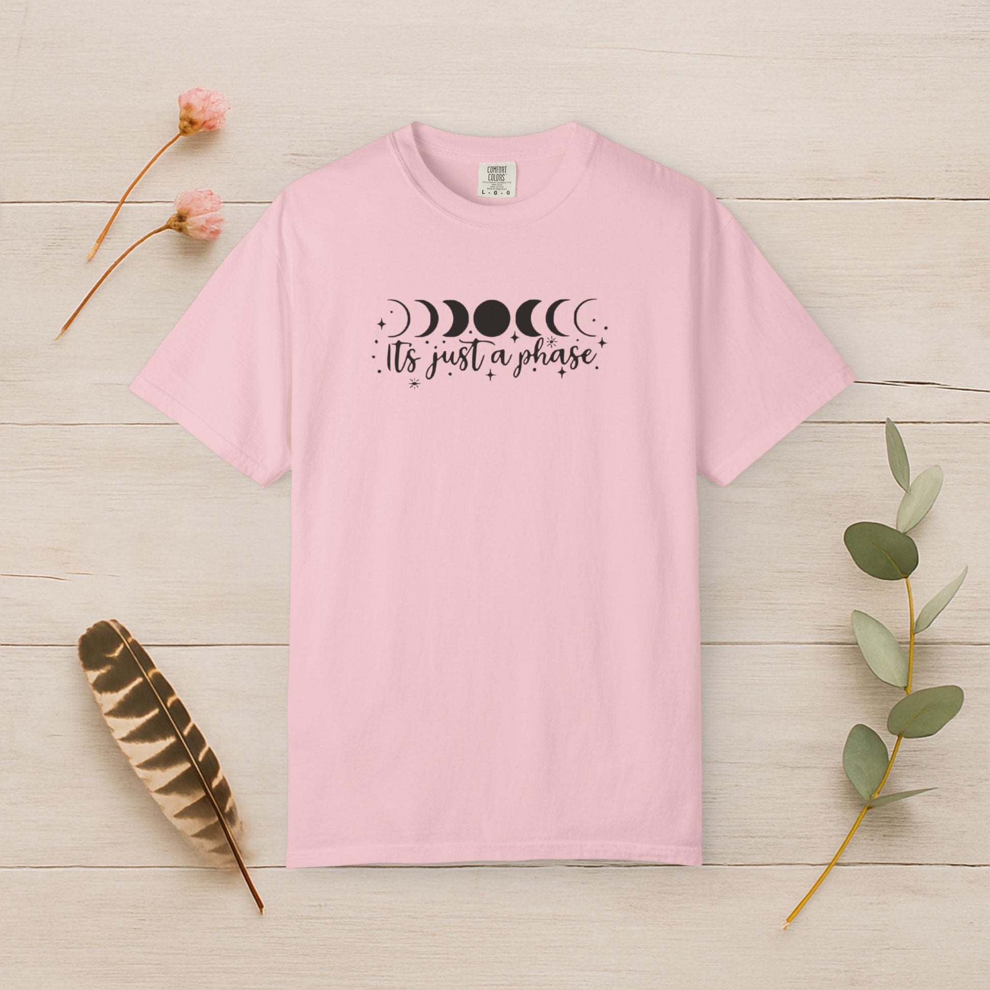 Bold moon phases and whimsical lettering create a design full of cosmic calm. Wear it as a reminder that growth takes time, seasons shift, and every phase has its own beauty.